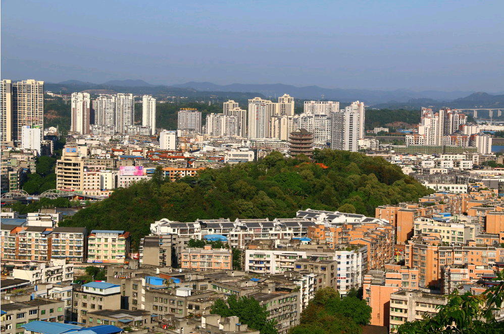 牛头山,位于县城之西,海拔高程约450米,与梓州公园地平面相对高度35米,状似牛头,山势雄浑。伫立“牛头”上,遥望东塔,远眺北塔,流盼凤凰(山),俯瞰凯、涪两江如银练交汇而环抱广厦千万间的梓州城,真是心旷神怡,感慨万千!那工部草堂、鸟语画廊、亭阁楼台古色古香;诗圣广场、将军牌坊、杜甫塑像更是气宇轩昂!牛头青山林木葱郁,亭台相映,小桥流水,鸟语花香,四季若春。